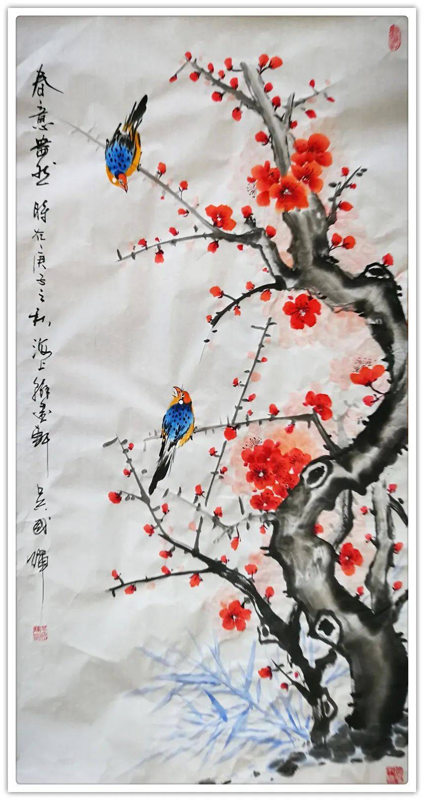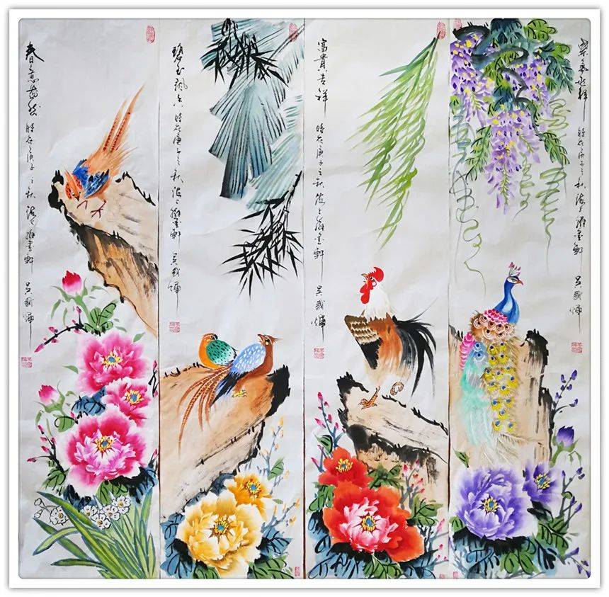 绿琼枝华诗情在,惠风拂花闪彩霞。能在花鸟画方面达到如此高的水平,奉献出如此令人惊艳的艺术作品,应该归于先生的悟性和灵才之气,先生全身心继承了传统花鸟的典范,丹青百家皆被先生深谙十分,其作品淋漓酣畅,画风大气秀丽,可以说是把花鸟的情态与精髓展现到了极致,欣赏其作时,总是不免令人感受到一股笔所未到韵已纯,紫霄缨络垂彩屏的艺术风趣,丹青大家,造极艺巅!